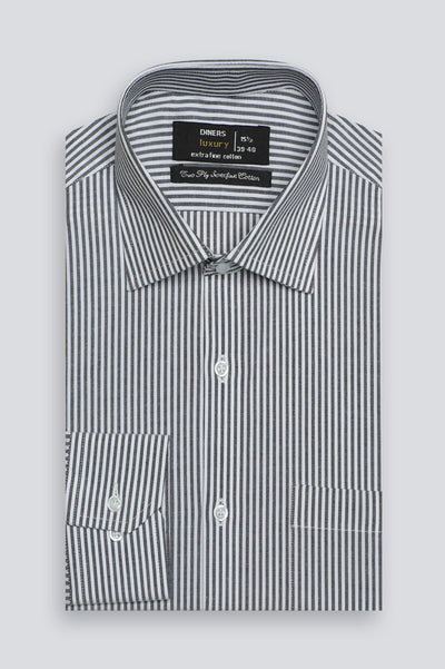 Sophistication has now a new look with Diners Luxury Stripe Regular fit. A must-have for a gentleman with a collection for the show. Wear it up with formal trousers, flaunt it in formal gatherings, and feel confident wherever you go.