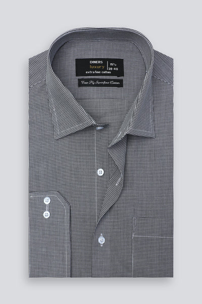 Black Houndstooth Check Formal Shirt