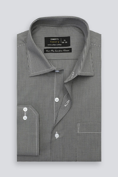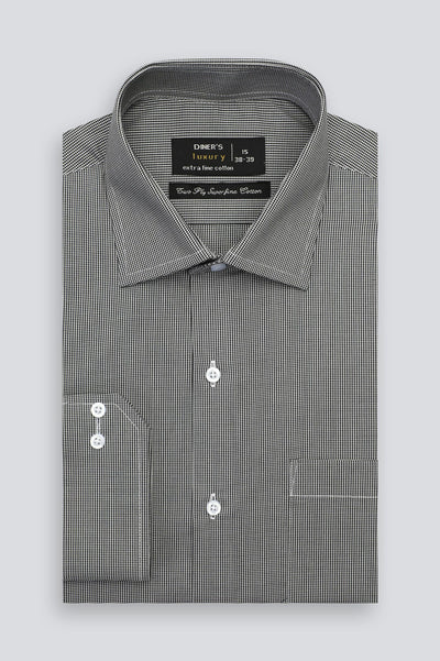 Black Houndstooth Check Formal Shirt