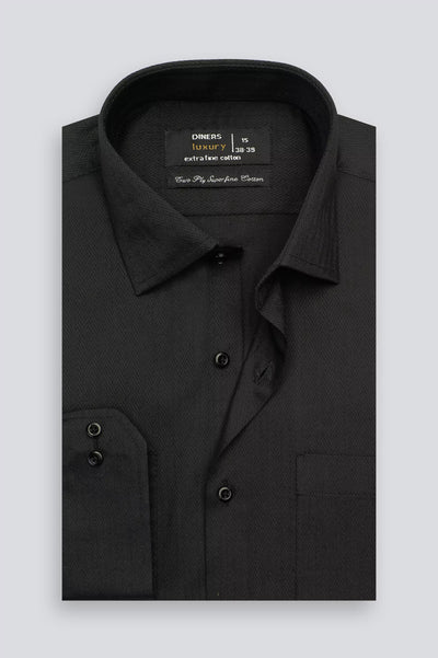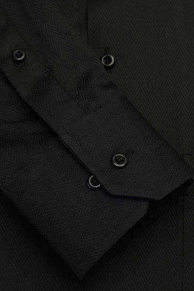 Black Herringbone Self Formal Shirt