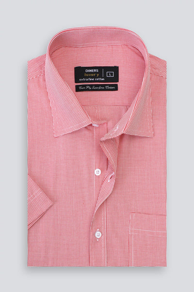 Red Houndstooth Formal Shirt (Half Sleeves)