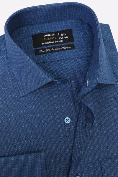 Blue Self Textured Formal Shirt