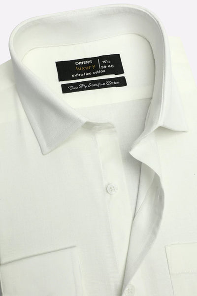 White Self Textured Formal Shirt