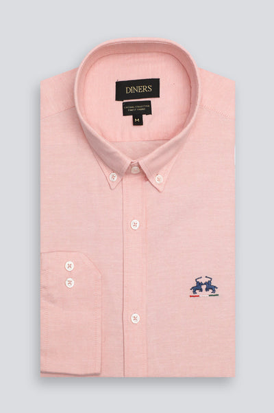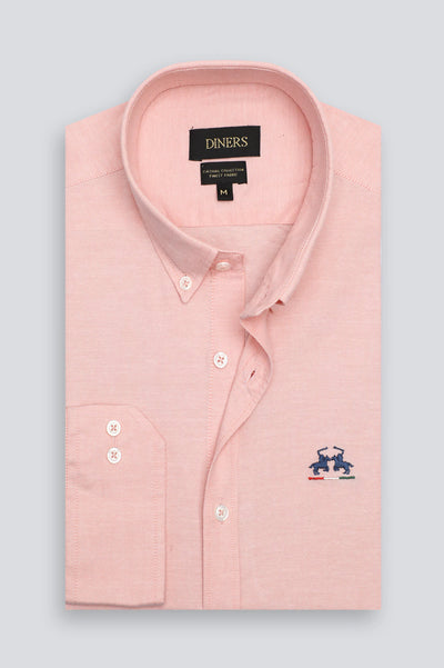 Peach Self Textured Casual Shirt