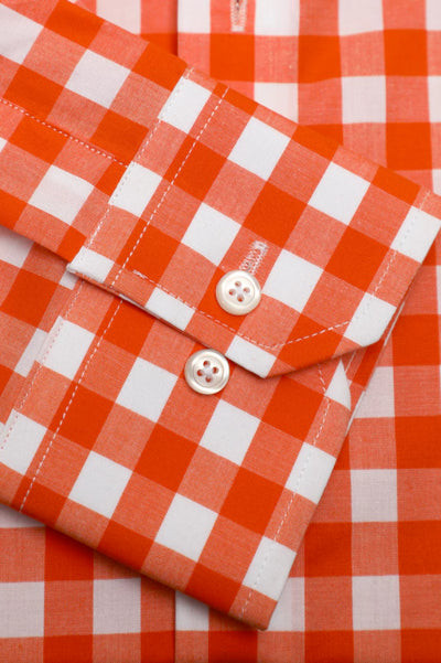 Orange Gingham Check Casual Shirt