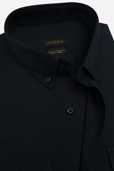 Navy Blue Self Textured Casual Shirt