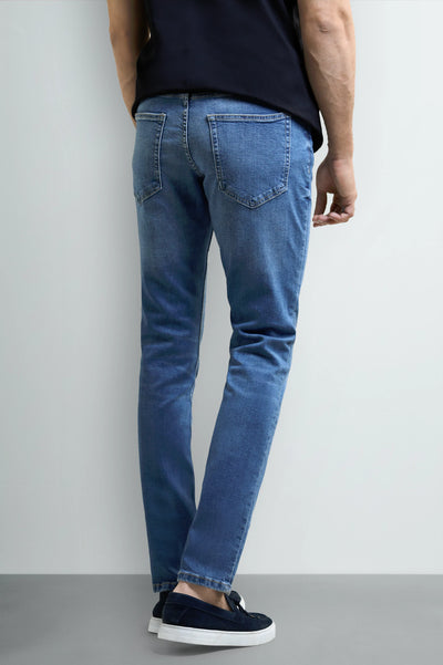 Expertly tailored for the modern wardrobe, these Slim Fit jeans provide a sleek, well-defined silhouette while ensuring all-day comfort. Designed with a secure button and zip closure, they feature functional front pockets and classic back patch pockets for everyday practicality. The streamlined fit delivers a sharp, contemporary look ideal for casual and smart-casual wear.