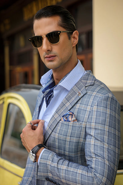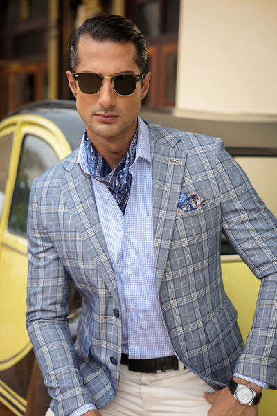 Elevate your wardrobe with the Diners Blue Check Blazer featuring a classic check pattern, three functional pockets, and stylish flap pockets. Designed with a tailored fit, this premium blazer is perfect for business meetings, evening dinners, or smart-casual looks. Pair with chinos or dress pants for versatile wear.