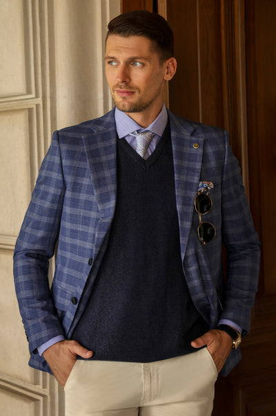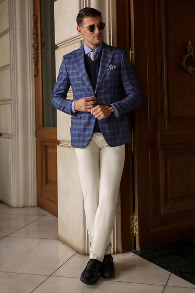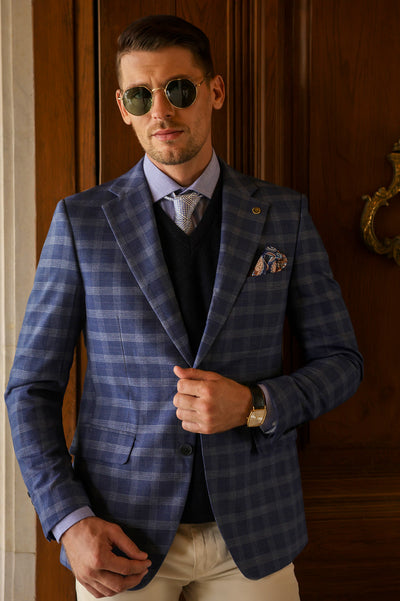 Bring freshness to your wardrobe with the Diners Light Blue Check Blazer, styled with a modern check design, three pockets, and functional flap pockets. Pair with light trousers for a summer-ready look or dark tones for evening events. Tailored for all-day comfort and style.