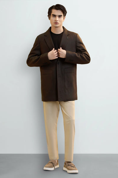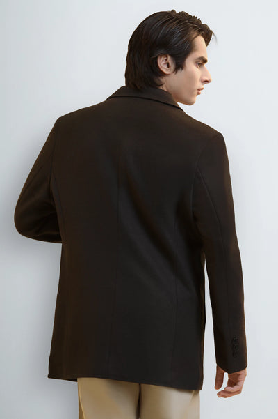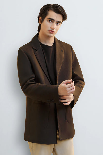 Men's Dark Brown Wool Blend Longline Coat