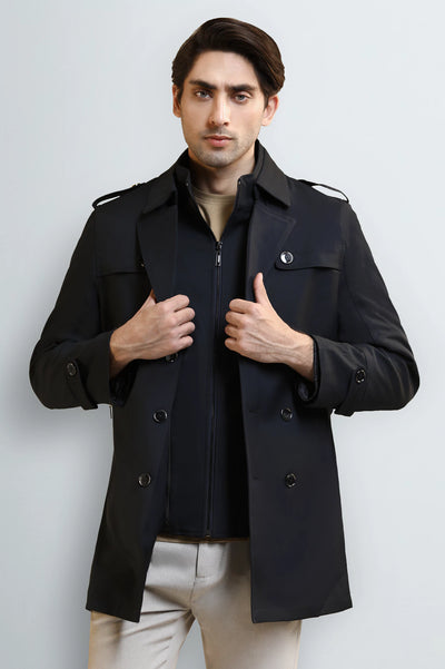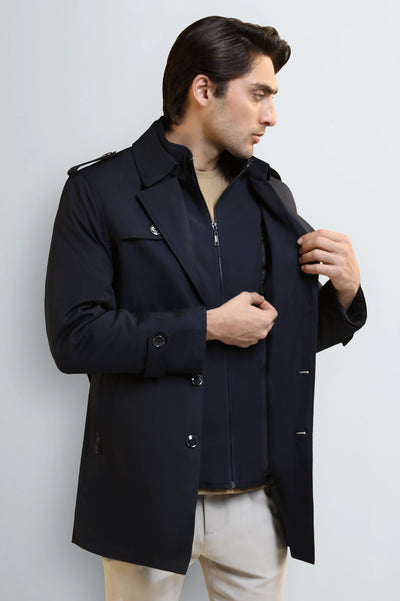 Upgrade your outerwear game with this versatile men’s navy overcoat — a refined 2-in-1 coat with a detachable inner jacket for maximum flexibility.
