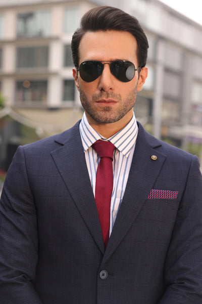 This 2PC Blue Formal Suiting for Men's is a perfect option for individuals who want to look well-groomed and sophisticated in formal settings because it is a monument to modern elegance. Three thoughtfully crafted pockets—two flap pockets at the sides and a chest pocket—offer functionality and a refined touch to the coat. The coat's matching pants have four pockets: two in the front and two at the back.