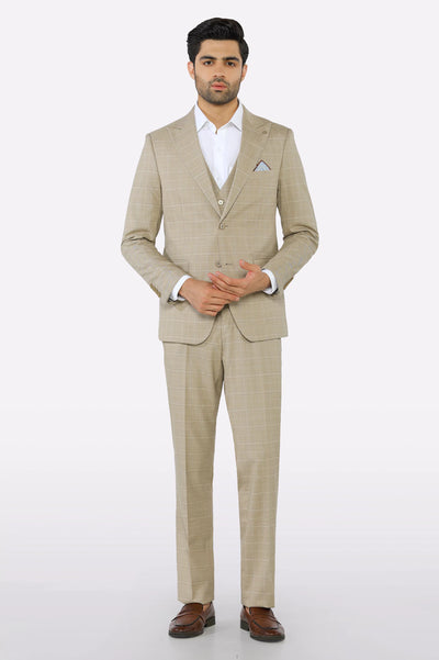 This 3PC Fawn Formal Suiting for Men's is a perfect option for individuals who want to look well-groomed and sophisticated in formal settings because it is a monument to modern elegance. Three thoughtfully crafted pockets—two flap pockets at the sides and a chest pocket—offer functionality and a refined touch to the coat. The coat's matching pants have four pockets: two in the front and two at the back.