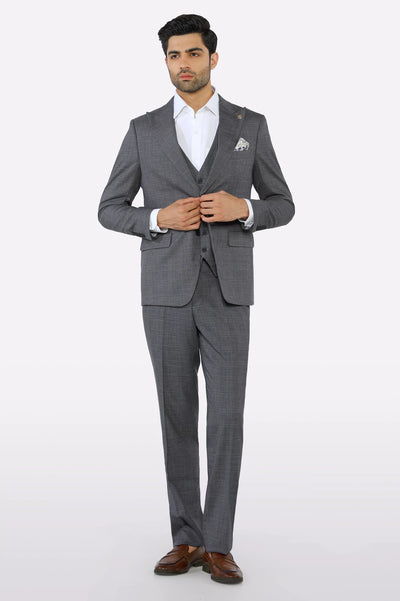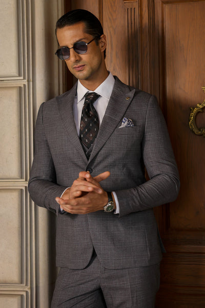 This 3PC Grey Formal Suiting for Men's is a perfect option for individuals who want to look well-groomed and sophisticated in formal settings because it is a monument to modern elegance. Three thoughtfully crafted pockets—two flap pockets at the sides and a chest pocket—offer functionality and a refined touch to the coat. The coat's matching pants have four pockets: two in the front and two at the back.