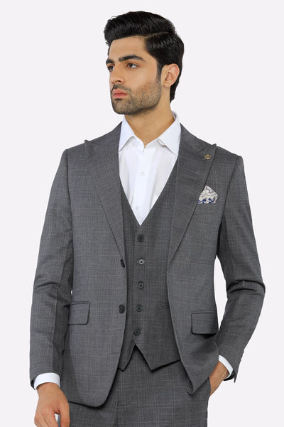 This 3PC Grey Formal Suiting for Men's is a perfect option for individuals who want to look well-groomed and sophisticated in formal settings because it is a monument to modern elegance. Three thoughtfully crafted pockets—two flap pockets at the sides and a chest pocket—offer functionality and a refined touch to the coat. The coat's matching pants have four pockets: two in the front and two at the back.
