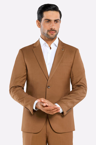 This 2PC Copper Formal Suiting for Men's is a perfect option for individuals who want to look well-groomed and sophisticated in formal settings because it is a monument to modern elegance. Three thoughtfully crafted pockets—two flap pockets at the sides and a chest pocket—offer functionality and a refined touch to the coat. The coat's matching pants have four pockets: two in the front and two at the back.