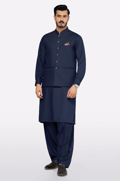 Dark Blue Shalwar Kameez with Waistcoat
