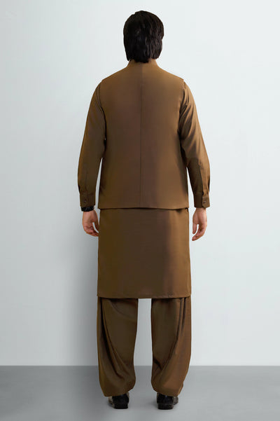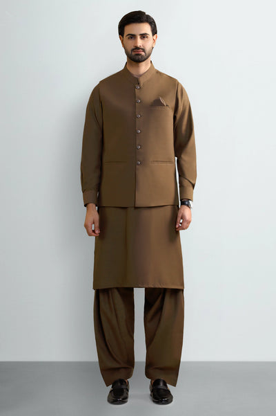 Brown Shalwar Kameez with Waistcoat