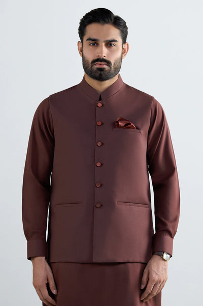 Dark Maroon Shalwar Kameez with Waistcoat