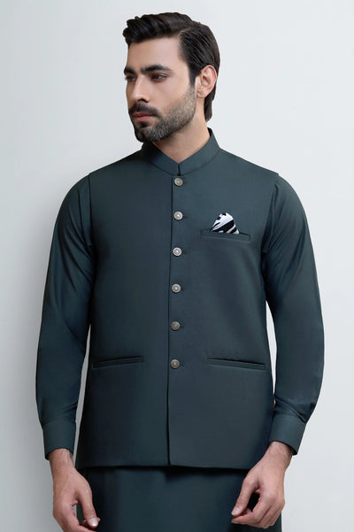 Dark Green Shalwar Kameez with Waistcoat