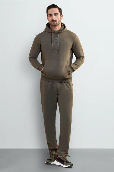 Shop the comfortable and stylish men's olive green hoodie. Crafted from a soft, quality fabric, this classic pullover features a subtle monogram stamp logo on the chest, a practical kangaroo pocket, and an adjustable drawstring hood. Perfect for layering or casual wear, this versatile and ultra-soft hoodie provides warmth and comfort for any occasion.