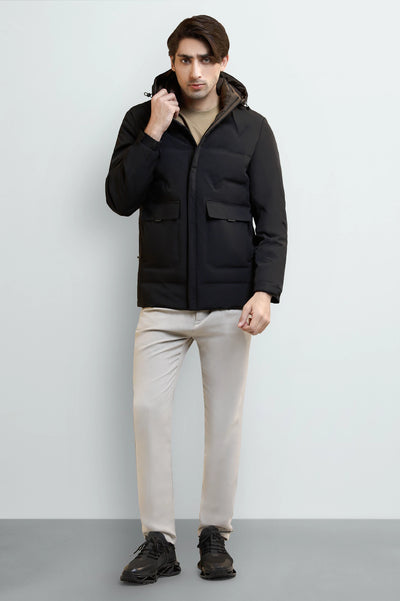 Elevate winter style with this premium men's semi-formal puffer jacket. crafted from high-quality material, this versatile hooded jacket offers both warmth and a chic look. Perfect for a range of occasions, from casual outings with jeans to more smart-casual events.