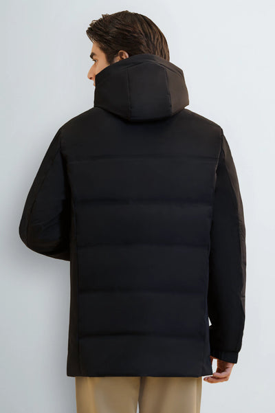 Elevate winter style with this premium men's semi-formal puffer jacket. crafted from high-quality material, this versatile hooded jacket offers both warmth and a chic look. Perfect for a range of occasions, from casual outings with jeans to more smart-casual events.