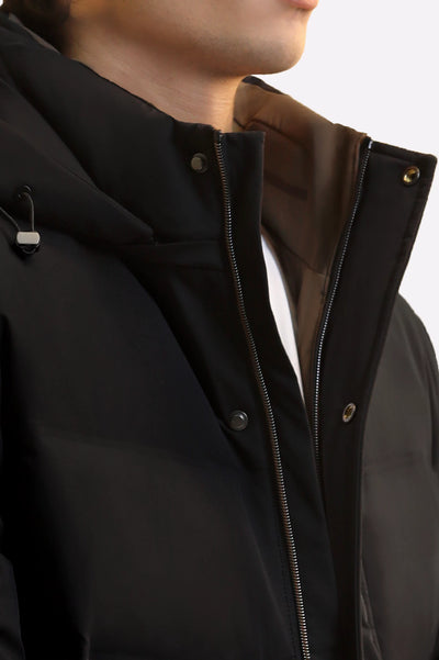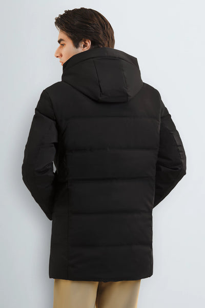 Discover the Diners men's long hooded jacket in a versatile black hue. This regular-fit jacket/parka is designed for maximum warmth and comfort during the colder months.
