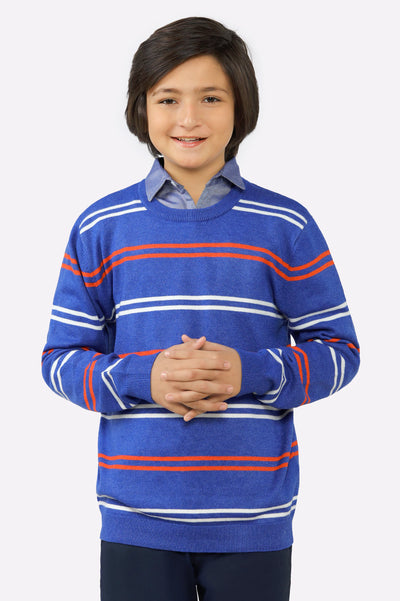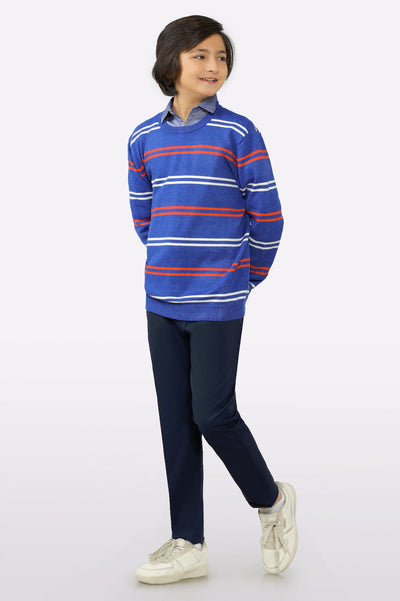 Blue Round Neck Boys Sweaters