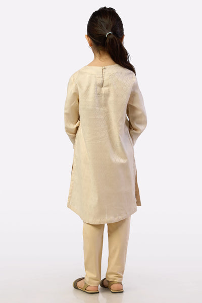 Beige Embroidered Girls Kurti