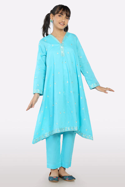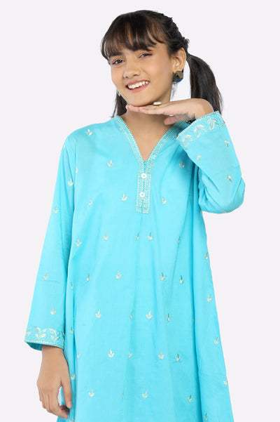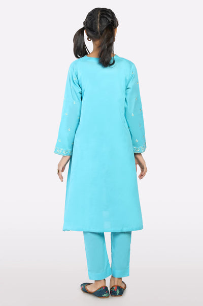 Sea Green Embroidered Girls 2PC