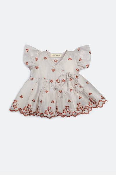 Beige Embroidered Infant Frock