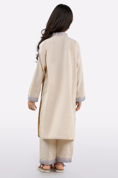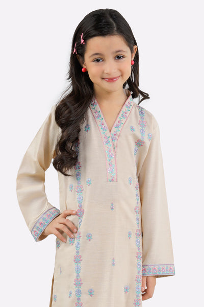 Beige Embroidered Girls 2PC