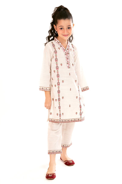 Off White Embroidered Girls 2PC
