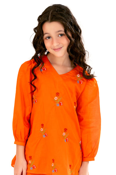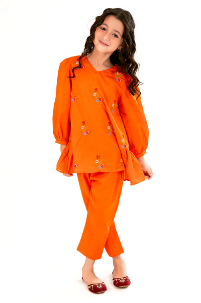 Orange Embroidered Girls 2PC