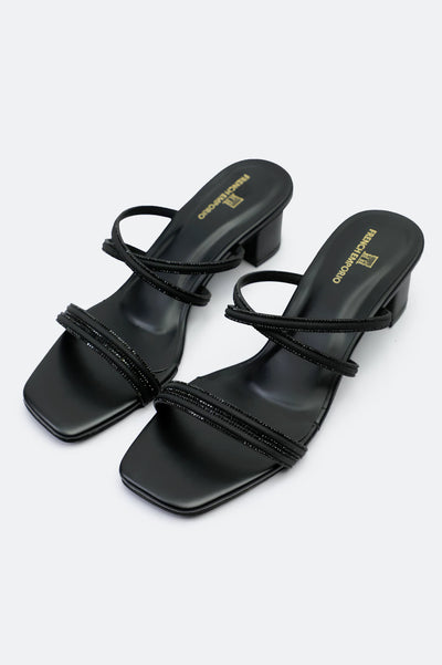 Elevate your evening look with these elegant embellished block heels from FRENCH EMPORIO. Featuring a chic multi-strap design and a modern square toe, these party-ready sandals offer both style and comfort. They include a cushioned footbed and a slip-resistant sole for stability.