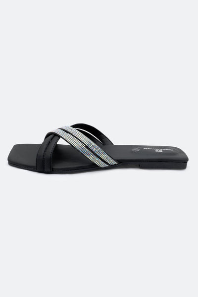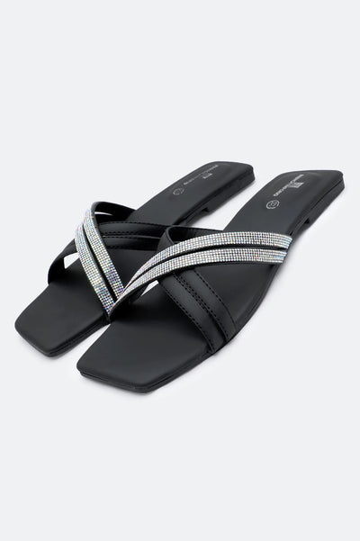 Step up your style game with our Glam Duo Sparkle Slides. Featuring cross straps adorned with shimmering crystals, these slides bring a touch of glamour to any look. The sleek design and cushioned foot bed provide both elegance and comfort, making them the perfect choice for day-to-night wear. Whether you're heading out for a casual brunch or an evening event, these versatile slides will elevate your outfit with a hint of sparkle.