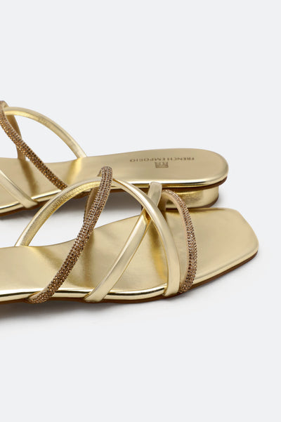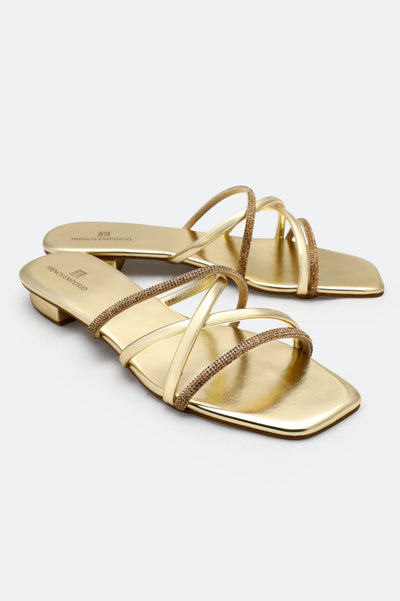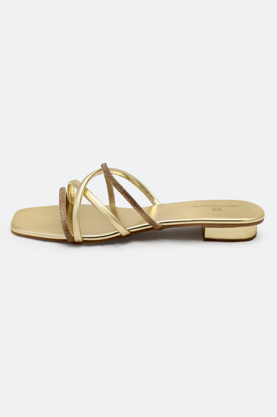 Chic golden formal slippers designed to elevate your look with their stylish and elegant finish.
