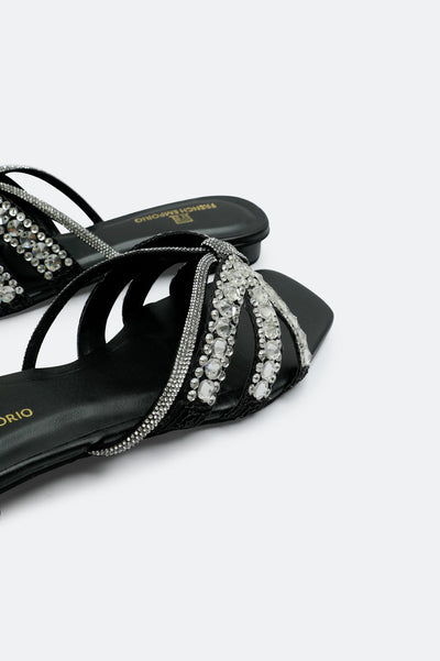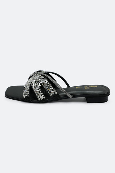 Black Crystal Bow Slides Slippers