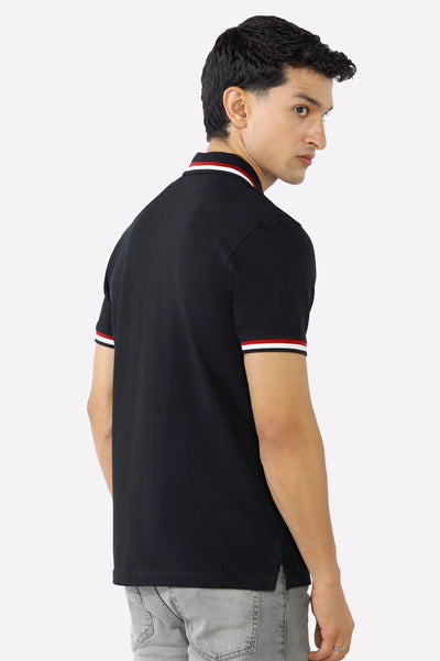 Black Solid Collar Lycra Polo