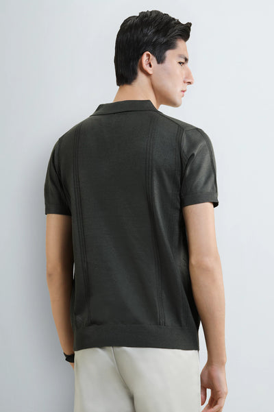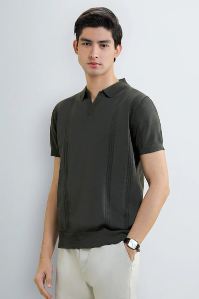 Men's Olive Flat Knit Polo
