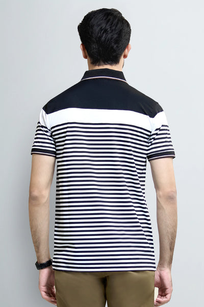 Elevate your casual wardrobe with the classic style of this Diners Men's Black & White Striped Polo Shirt. This shirt combines timeless design with everyday comfort.