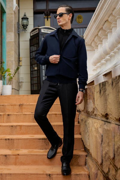 Elevate your casual wardrobe with the stylish and versatile Men's Spread Collar Solid Bomber Jacket. Crafted for comfort and a clean, regular fit, this navy jacket is a timeless addition to any ensemble.