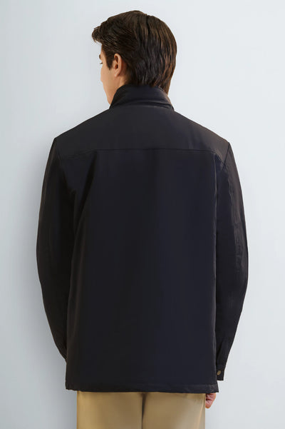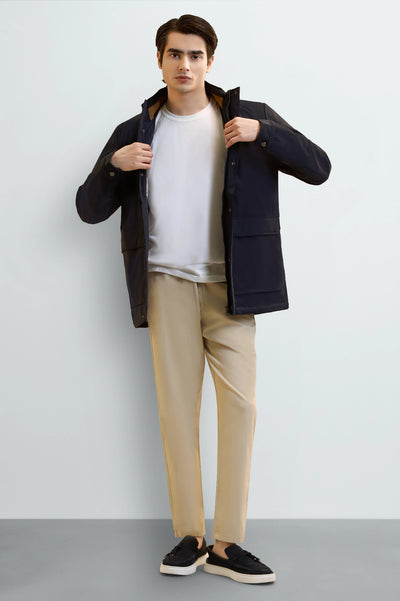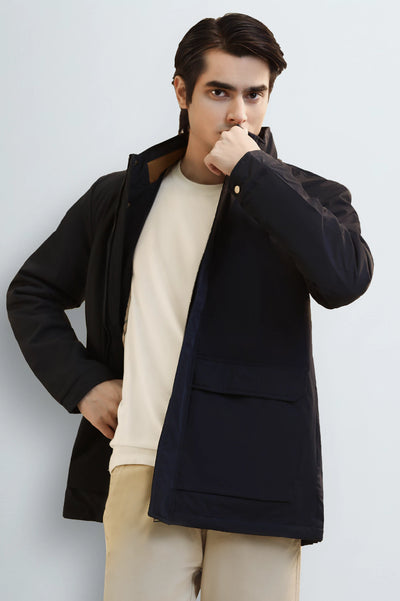 Stay stylish and dry with this men's water-repellent parka jacket in a versatile navy blue hue. Featuring a quilted design and practical pockets, it is a versatile wardrobe addition.
