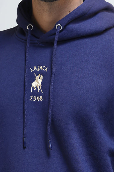 Men's Navy Blue Fleece Hoodie with Logo