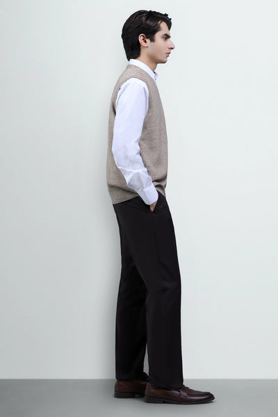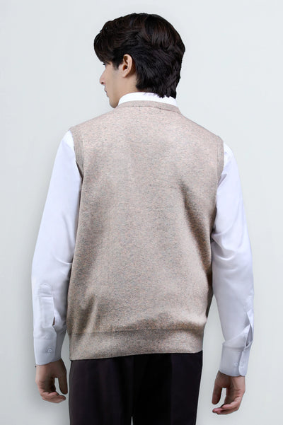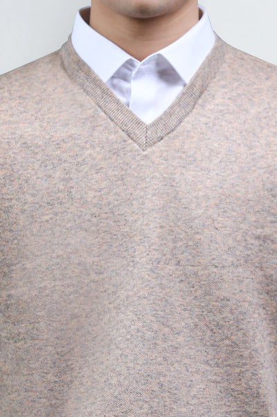 Elevate your smart-casual style with this Beige Sleeveless V-Neck Sweater. Designed for layering, it pairs perfectly with a crisp white shirt or formal attire, offering a refined yet versatile look. Crafted with comfort in mind, this neutral beige shade makes it an essential wardrobe piece for office wear, business meetings, or semi-formal gatherings.