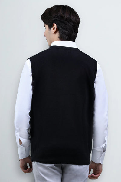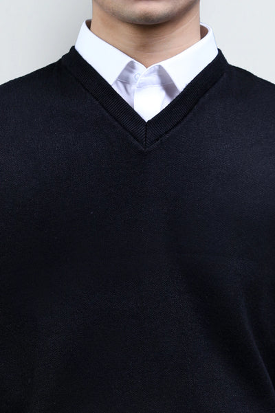 Stay timeless and sophisticated with this Black Sleeveless V-Neck Sweater. A wardrobe staple, this versatile piece complements both formal and casual outfits. The deep black shade adds elegance, making it suitable for evening dinners, office meetings, or daily smart dressing.