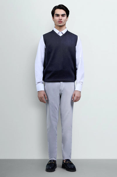 Refined and modern, this Charcoal Sleeveless V-Neck Sweater is the perfect layering piece for men who appreciate understated elegance. Its dark, versatile tone pairs seamlessly with classic white shirts and tailored trousers, making it an excellent choice for office wear or smart evening events.