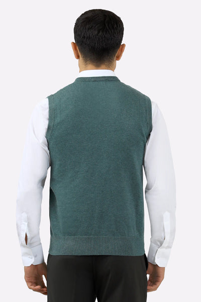Men V-Neck Teal Sleeveless Sweater