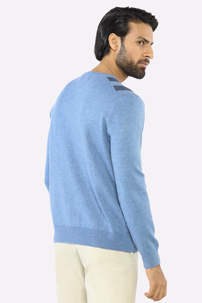 Men Sky Blue Round Neck Sweater